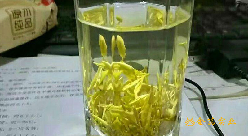 黃金茶系蠟梅科植物、學(xué)名為柳葉蠟梅的嫩葉經(jīng)加工制作而成的一種功能性綠茶。生長(cháng)在雙牌上梧江云臺山,無(wú)污染,純天然,承天地之精華,匯萬(wàn)物之靈氣。